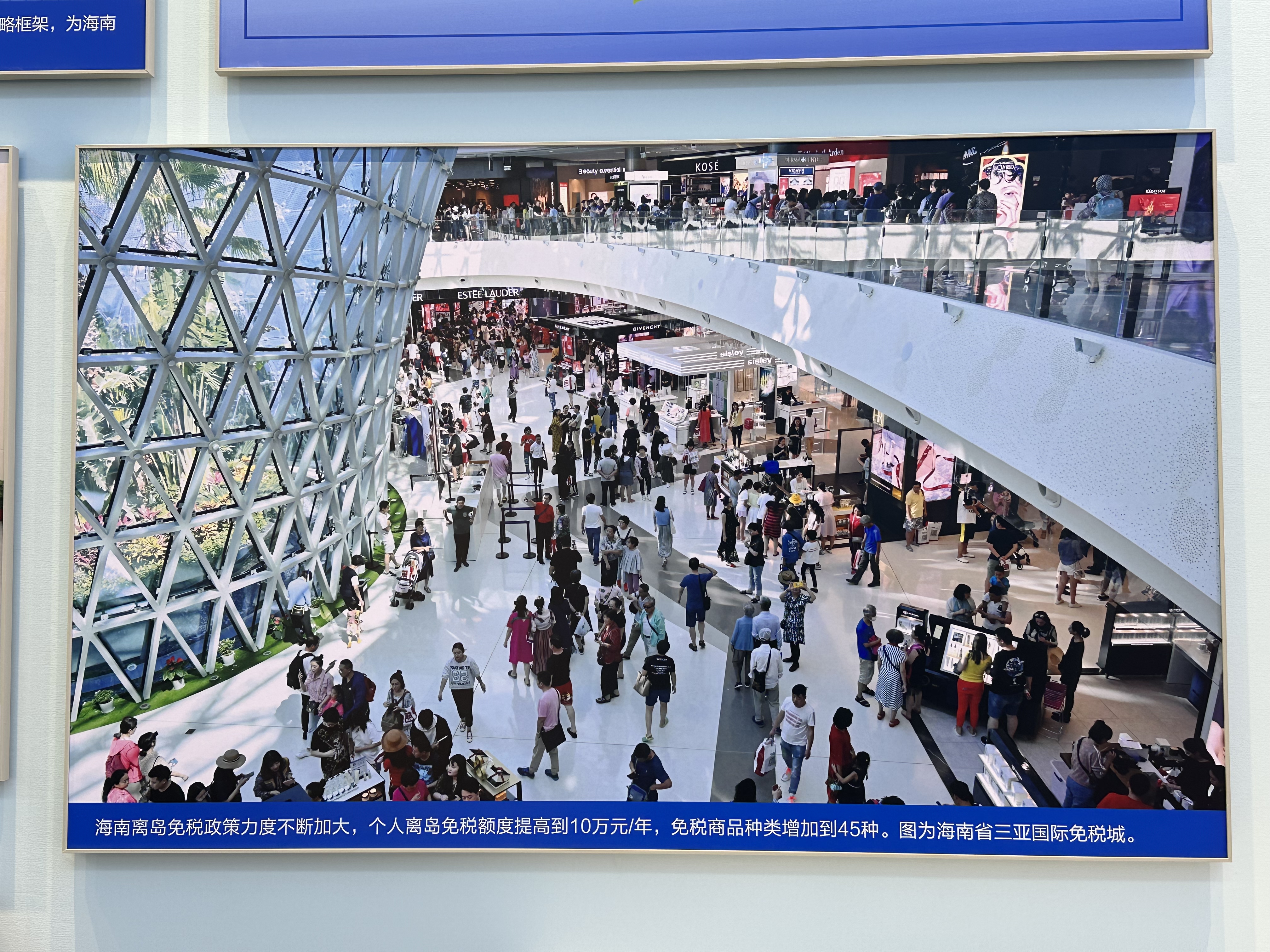 圖為主題成就展地方展區(qū)(海南)展示的三亞國(guó)際免稅城內(nèi)景。