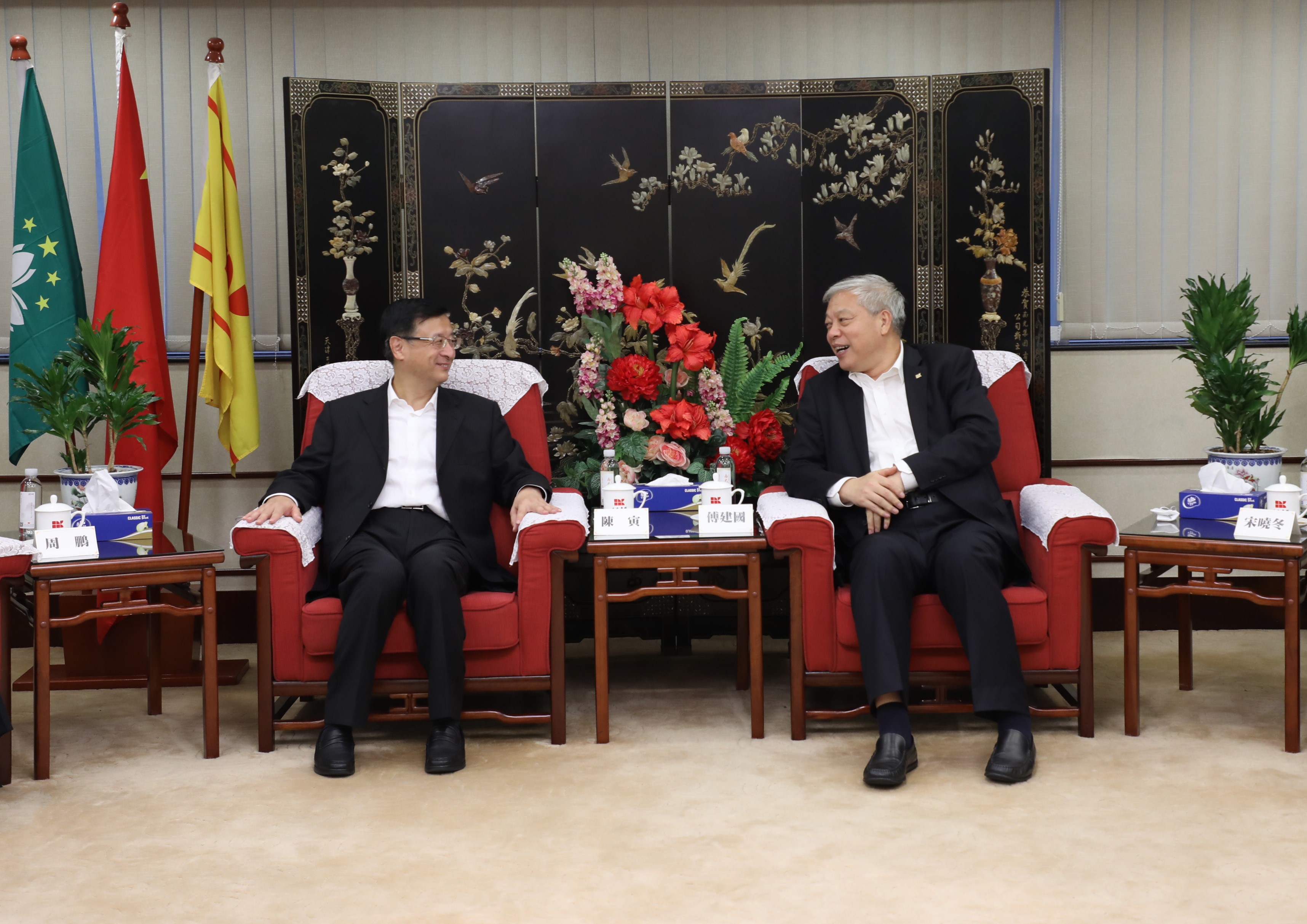 12月1日至2日,陳寅董事長分別拜訪了澳門中聯辦、澳門特區政府經濟財政司、南光集團,并與各方進行了深入交流。