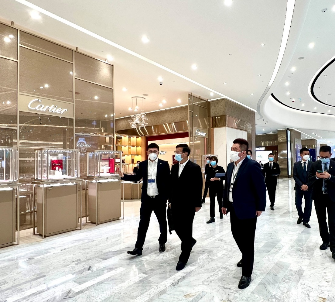 12月2日,陳寅董事長來到中旅免稅澳門市內店進行工作調研,詳細詢問了商品銷售、品牌招商和會員服務等情況。隨后舉行座談,聽取線上線下業務的工作匯報。陳寅董事長還來到辦公區,悉心詢問員工工作生活情況,并向干部職工表示慰問。