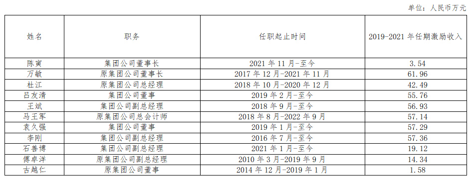 中國旅游集團有限公司企業負責人2019-2021年任期激勵收入情況