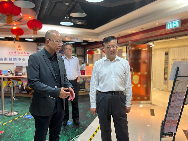 在香港中旅社沙田分社,陳寅董事長詳細了解旅游業(yè)務(wù)恢復(fù)情況和門市的經(jīng)營情況。陳寅董事長指出,經(jīng)過4年多時間的沖擊,香港旅游業(yè)迎來了恢復(fù)發(fā)展,要堅定發(fā)展信心,在服務(wù)質(zhì)量和服務(wù)體驗上多做文章,要用好集團在港的統(tǒng)一線上業(yè)務(wù)平臺,結(jié)合集團在內(nèi)地的旅游目的地資源,加快恢復(fù)和拓展業(yè)務(wù)。
