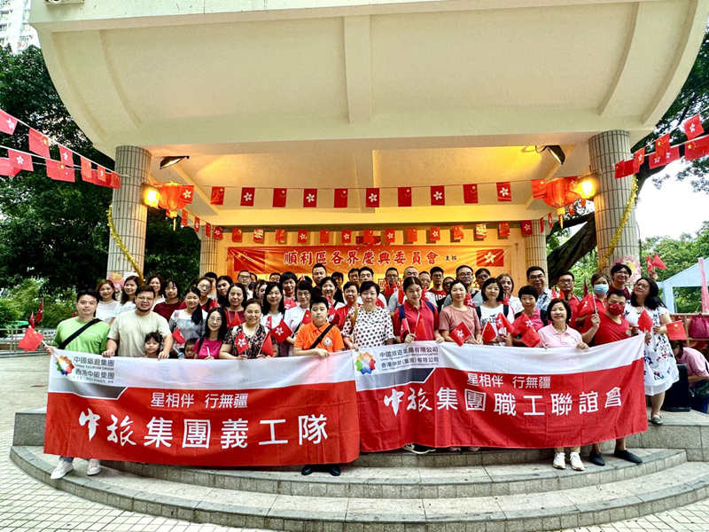 國慶期間,集團組織香港員工參加社區一系列活動,與香港市民、社會各界共慶祖國74周年華誕。 10月1日清晨,集團職工聯誼會組織百余名員工到觀塘雙順社區、港島東愛秩序灣社區與市民一道參加社區“升國旗”儀式,共慶祖國生日,表達對祖國的崇高敬意和美好祝福。