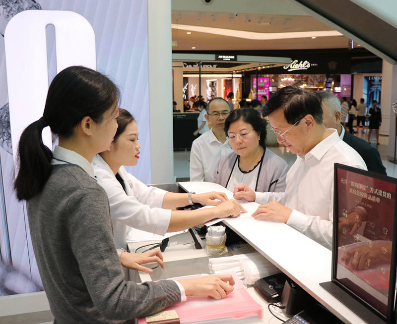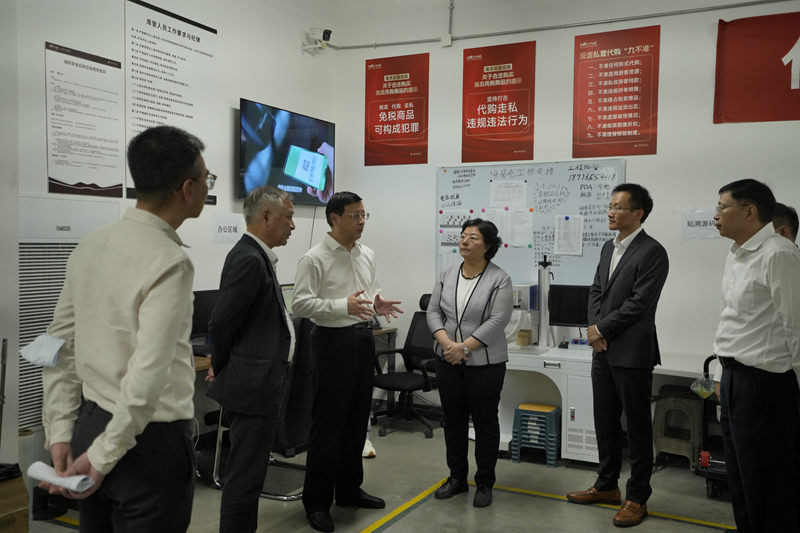 在三亞國(guó)際免稅城,陳董深入香化區(qū)、物流分揀倉(cāng)及視頻監(jiān)控室進(jìn)行實(shí)地檢查,重點(diǎn)了解免稅品銷售及物流環(huán)節(jié)各風(fēng)險(xiǎn)點(diǎn)的防控情況、員工教育培訓(xùn)情況、與監(jiān)管部門聯(lián)防聯(lián)控等情況。他強(qiáng)調(diào),作為深耕海南的中央企業(yè),要進(jìn)一步提高政治站位,清醒認(rèn)識(shí)立行立改,抓好深化整治免稅品“套代購(gòu)”工作的極端重要性,始終保持高度緊迫感和責(zé)任感,層層壓實(shí)主體責(zé)任,健全工作機(jī)制,確保各項(xiàng)工作要求傳達(dá)到位、責(zé)任落實(shí)到人,將防范打擊“套代購(gòu)”和推動(dòng)生產(chǎn)經(jīng)營(yíng)兩手抓;同時(shí)要持續(xù)關(guān)注“即購(gòu)即提”政策的開展,及時(shí)向政府相關(guān)部門反饋旅客消費(fèi)習(xí)慣變化,助力并推動(dòng)政策進(jìn)一步完善,為海南國(guó)際旅游消費(fèi)中心建設(shè)持續(xù)輸出力量。在配合地方政府聯(lián)防聯(lián)控工作方面,要進(jìn)一步加強(qiáng)與海關(guān)、緝私部門的合作協(xié)同,保持信息聯(lián)絡(luò)暢通,通過信息系統(tǒng)技術(shù)手段進(jìn)行大數(shù)據(jù)篩查,及時(shí)報(bào)送、更新“黑名單”信息,做好“套代購(gòu)”不法分子的攔截工作;對(duì)于經(jīng)營(yíng)場(chǎng)所內(nèi)的異常行為,例如疑似“套代購(gòu)”人員聚集等,要及時(shí)與駐店海關(guān)、緝私部門溝通匯報(bào),一定要杜絕顯性、表面、成團(tuán)伙“套代購(gòu)”現(xiàn)象發(fā)生,全力配合做好聯(lián)防聯(lián)控工作。