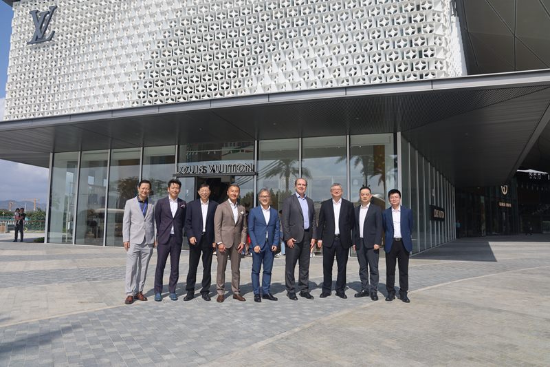 1月29日,集團王海民總經理與太古地產行政總裁彭國邦于三亞會面,共同考察三亞國際免稅城一期、二期云戒島,以及新開業的一期C棟全球美妝廣場,并聽取雙方合作項目三亞國際免稅城三期的最新進度匯報。