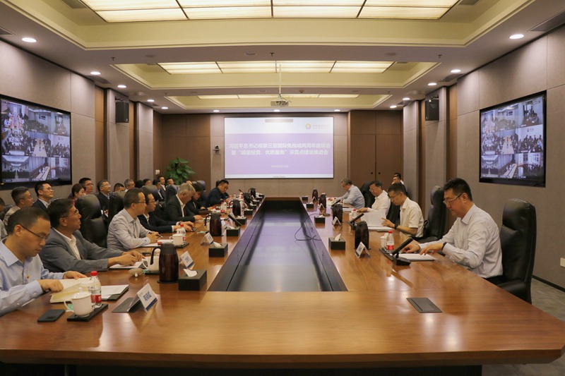 會后,與會人員現場參訪了集團示范點企業三亞國際免稅城,大家一起重溫了習近平總書記對集團的殷殷囑托,共同交流了示范點企業創建的好經驗、好做法。