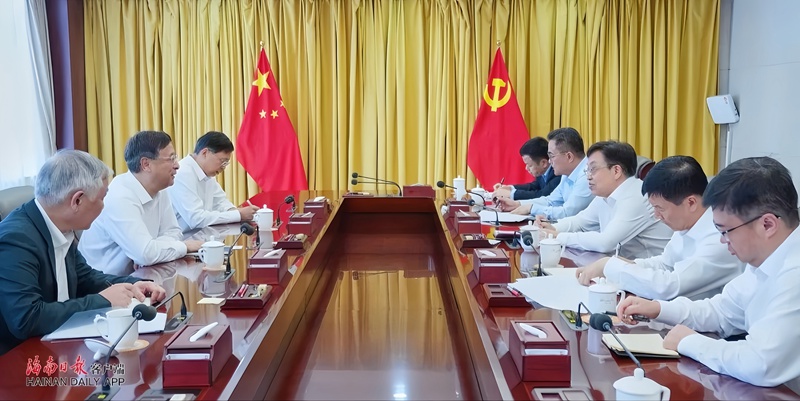 海南省領導倪強、陳懷宇,省相關部門負責人,集團海南區域總部、中旅免稅相關負責人參加會談。