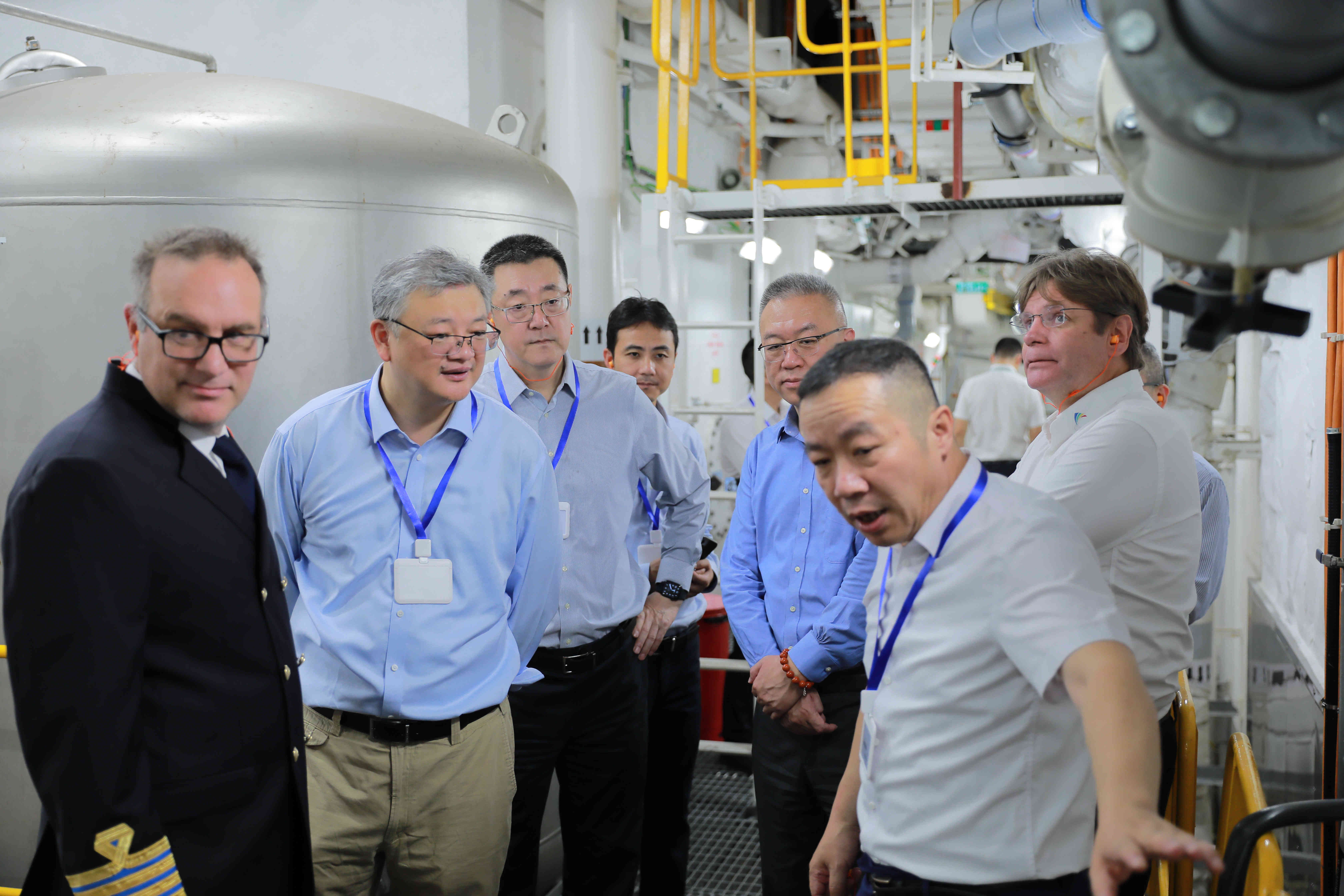 王海民充分肯定了船岸團隊在船舶安全運行、維護保養、客艙服務等方面所作的努力。在駕駛臺,王海民詳細了解雙節期間航行計劃、天氣情況、導航設備以及惡劣天氣應急處置預案等情況。在集控室與機艙,實地檢查了設施設備維護保養等情況。在后廚,細致詢問廚房工作人員有關食材采購、操作流程以及食品安全等情況。調研期間,王海民與上海外高造船公司董事長陳剛、國家京劇院院長王勇分別就優化郵輪安全管理體系、打造郵輪文旅融合產品等進行交流。