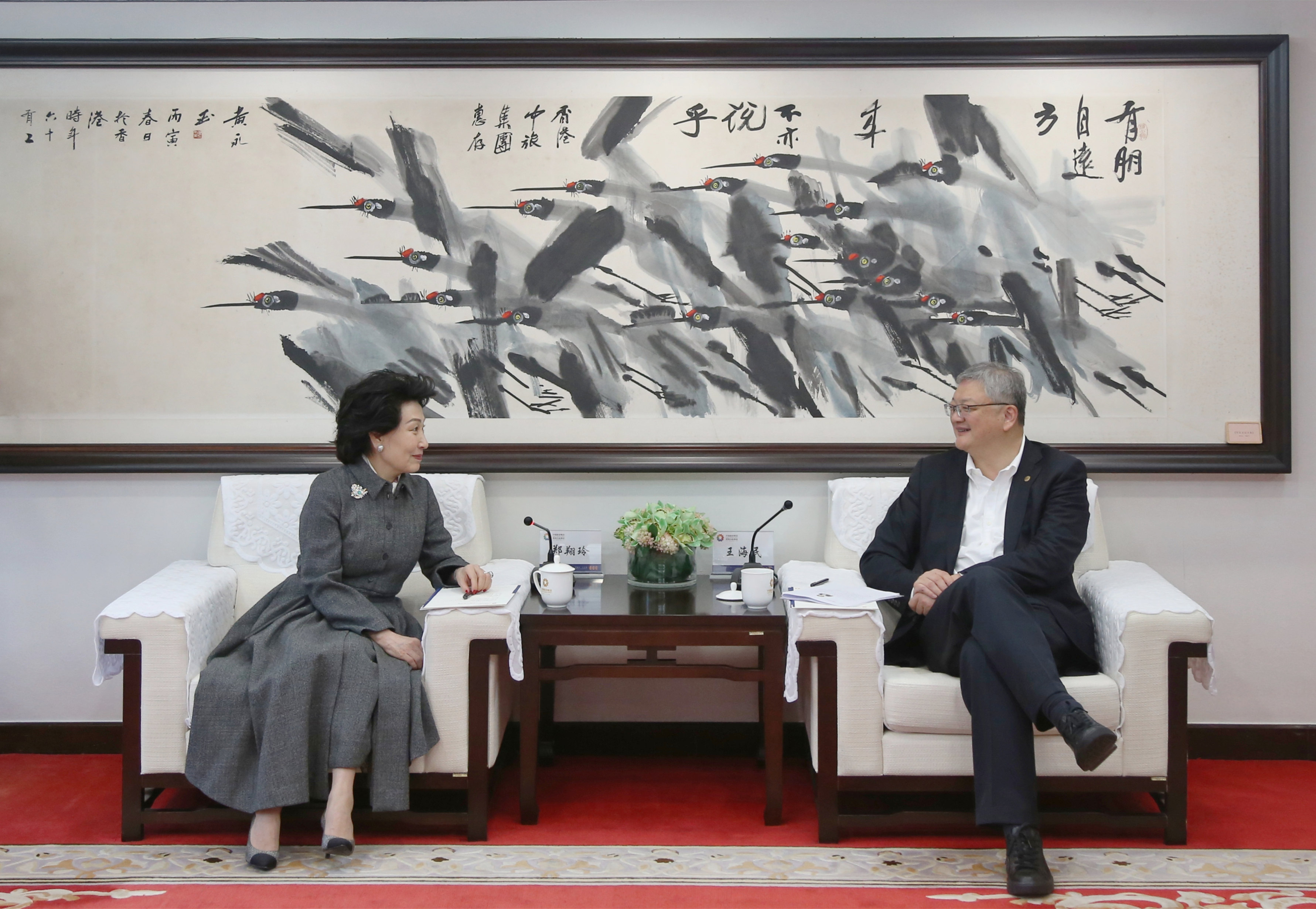 12月17日,集團(tuán)董事長王海民在香港會見正大制藥集團(tuán)總裁、香港中華聯(lián)誼會會長、香港“一帶一路”總商會會長鄭翔玲一行。
