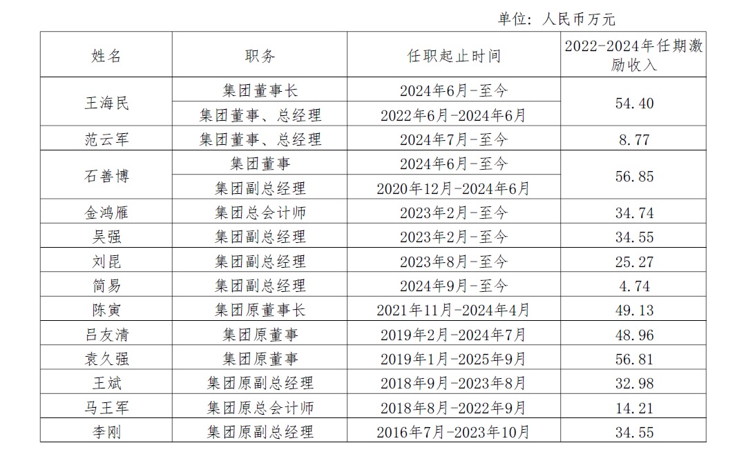 中國旅游集團有限公司企業負責人2022-2024年任期激勵收入情況