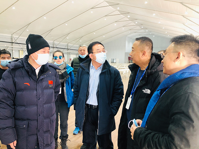 12月7日,北京2022冬奧組委副主席、河北省政協(xié)副主席、張家口冬奧村村長徐建培,在冬奧組委奧運村部副部長、張家口冬奧村運行團隊主任賈凱等有關(guān)領(lǐng)導(dǎo)的陪同下,來到中旅冬奧服務(wù)團隊負責的冬奧村運動員餐廳視察工作。